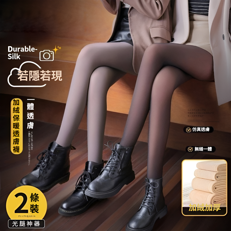 秋冬新款【加絨保暖黑透膚】買一送一!秋冬加絨加厚透膚襪 透膚一體 美腿性感寬鬆大碼光腿神器,秋冬必備!均碼40-80KG都能穿!