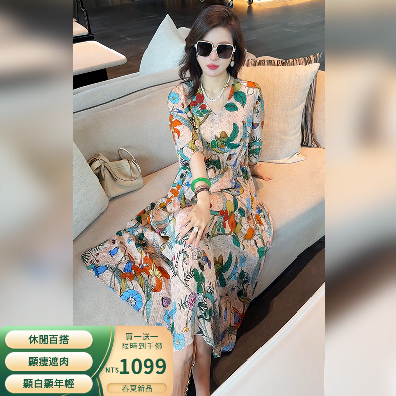 復古風花卉長裙 寬鬆剪裁包容身形 質感面料親膚透氣 花色大氣高級 展現從容優雅的氣質