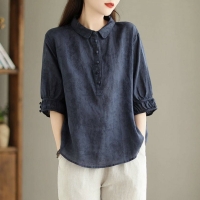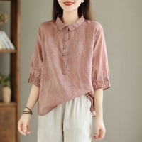 軟軟親膚不悶熱 五分泡泡袖剛好藏住肉肉 前襟半扣設計簡單好看 顯高又顯瘦 怎麼穿都耐看