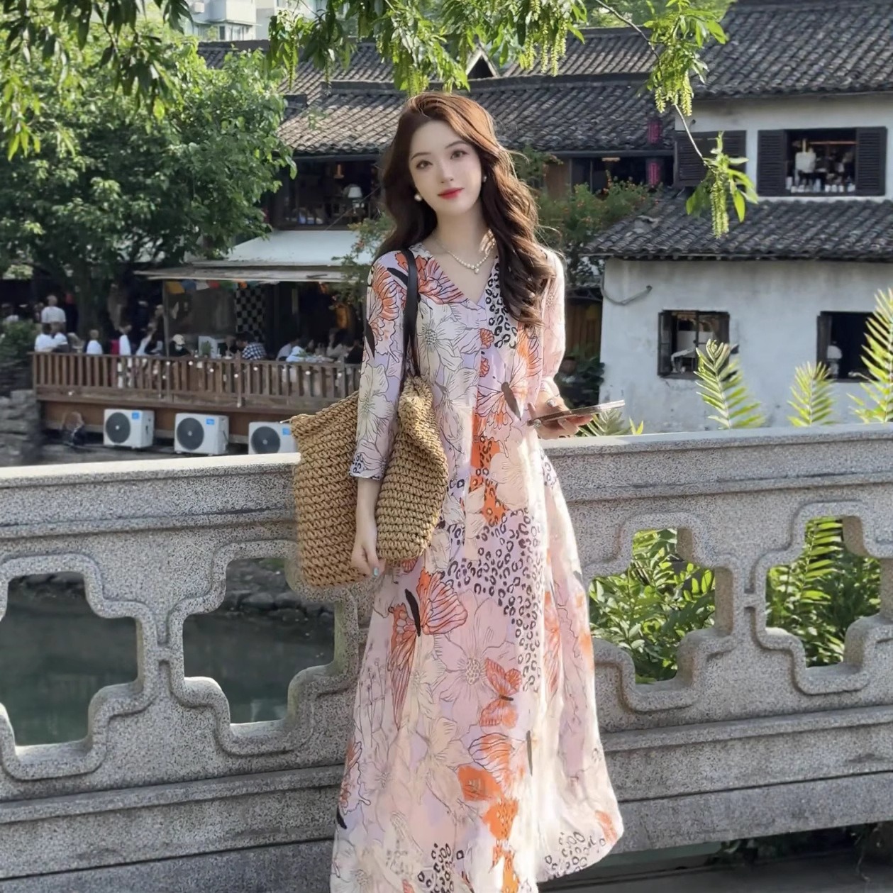 大朵印花飄逸仙氣 高腰設計修飾身形 海邊度假或下午茶都超吸睛