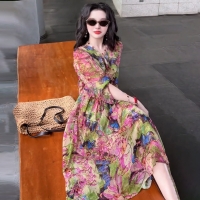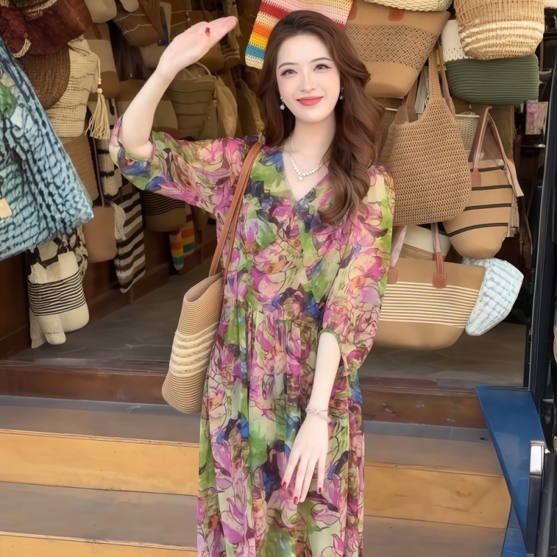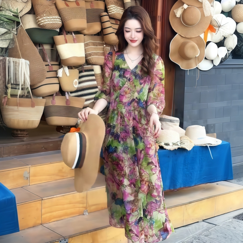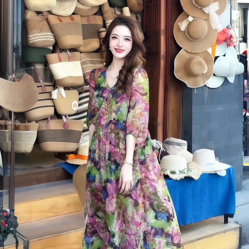 【洋氣度假風長裙】這款印花洋裝太好看了 獨特花紋超吸睛 棉質面料穿起來超舒服 約會通勤都適合 穿上就是焦點