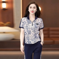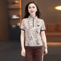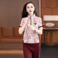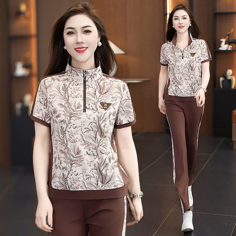 休閒運動套裝 立領拉鍊設計透氣舒適 印花點綴優雅耐看 日常出門 運動都好穿